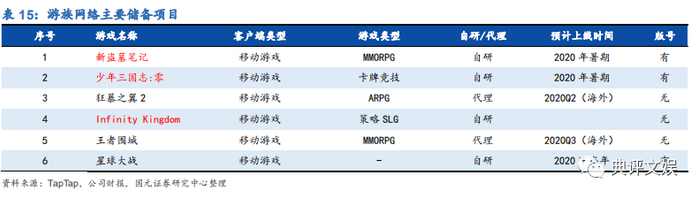 (4)重点厂商新游排期:网易《天谕手游》、《阴阳师:妖怪屋》(已开启终测);完美世界《梦幻新诛仙》、《战神遗迹》;三七互娱页转手重点项目《荣耀大天使》、《浮生妖绘卷》、SLG 手游《Final Order》(预计 Q3 上线);宝通科技二次元手游《终末阵线:伊诺贝塔》(B 站独代,预约人数超 17 万)、《WST》(已开启测试,预计 Q2-Q3 欧美地区上线 》;吉比特《魔渊之刃》(9.17)、《不朽之旅》(9.10)、《荣誉指挥官》(8.26)、《一念逍遥》;世纪华通《庆余年》;游族网络《少年三国志:零》(Q3 上线)、《盗墓笔记》;掌趣科技《街霸:对决》、《全民奇迹 2》、《黑暗之潮》(腾讯独代);字节独代、凯撒文化研发的二次元 MMO 手游《火影忍者:巅峰对决》(已开启预约)。
