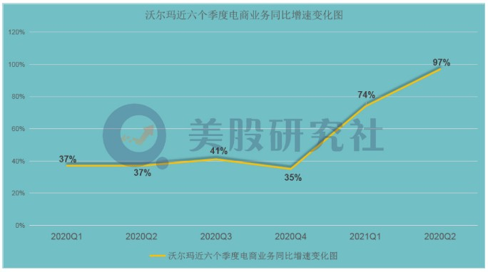 二季度的财报数据显示:沃尔玛电商业务增幅较大,其中,美国市场电子商务销售额涨幅为97%,山姆俱乐部电子商务销售额增长了39%。