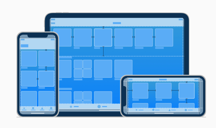 App 的内容布局可以自适应多种不同尺寸、不同比例的屏幕,在 Auto Layout、Size Class、Safe Area 的帮助下,固定尺寸的 app 设计思想被弱化,Apple 生态圈的 app 自由变换显示尺寸指日可待;