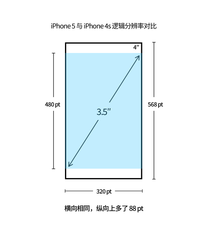这种通过屏幕逻辑分辨率「横向不变、纵向变长」来增长屏幕尺寸的方式是 iPhone 屏幕进化的重要方式之一,在日后还会多次看到,同时由于这种变化导致的 app 上下存在黑边的适配问题也同样会多次出现。