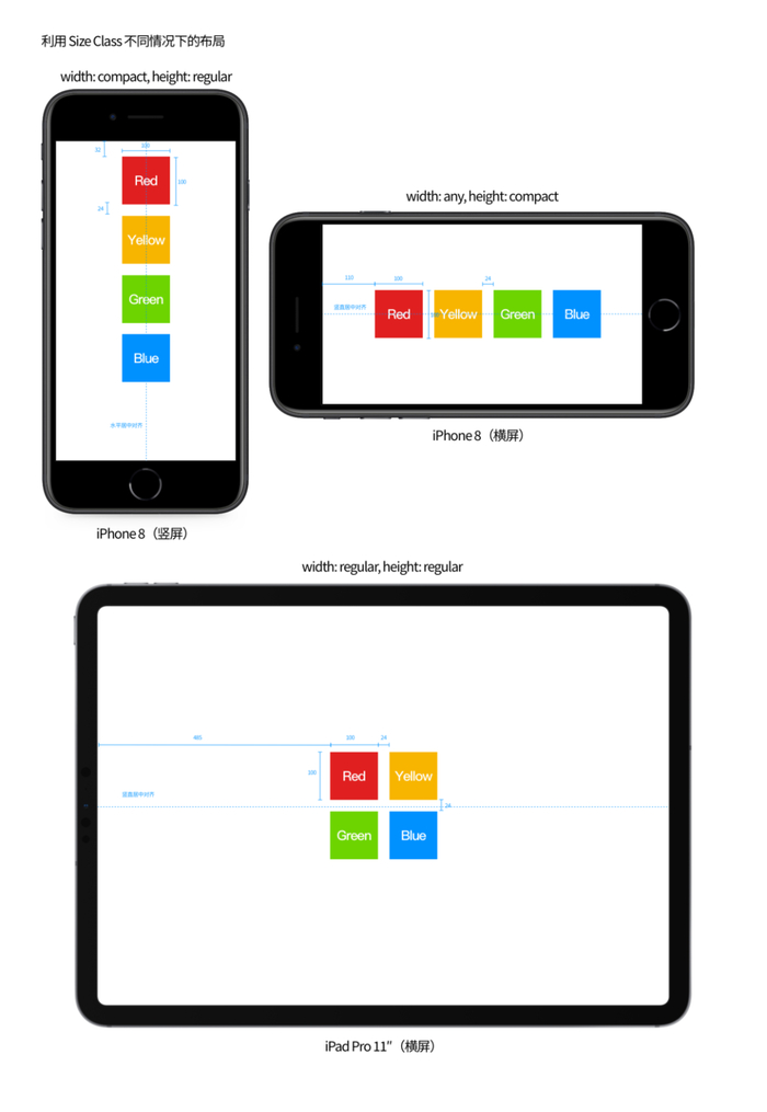 想要了解每个 iPhone 和 iPad 的 Size Class 以及 Size Class 的更多内容可参考 iOS Human Interface Guidelines 中的相关章节:sspai.com/s/nMlo 以及我的文章:《在不同尺寸的设备上让 app 都大放异彩:尺寸级别和核心要素 Size Classes and Core Components》steppark.net/15171487371271.html。