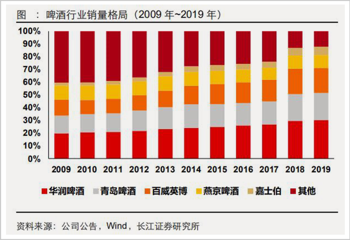 公开数据显示,2013年至今,五大啤酒巨头总的市场份额已超过70%,总市占率还在逐年上升。