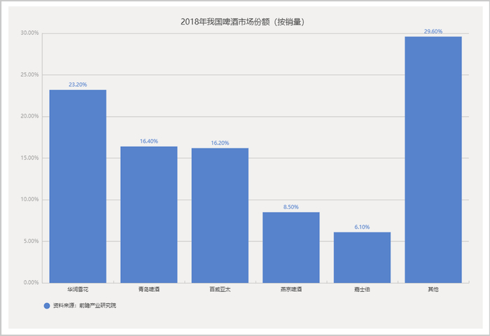 其次为青岛啤酒和百威亚太,市场份额均在16%以上。