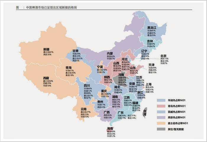 目前,五大啤酒巨头在各自的主战场都实现了“诸侯割据”。