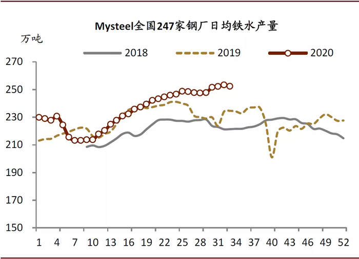 图表: 247家样本钢厂日均铁水产量同比维持高位