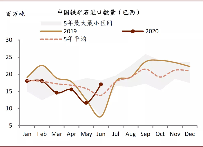 图表: 2020年1-6月从巴西进口铁矿石同比下降4%