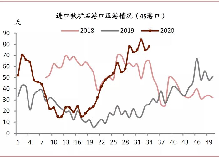 图表: 当前45港口进口铁矿石的压港情况较为严重[2]