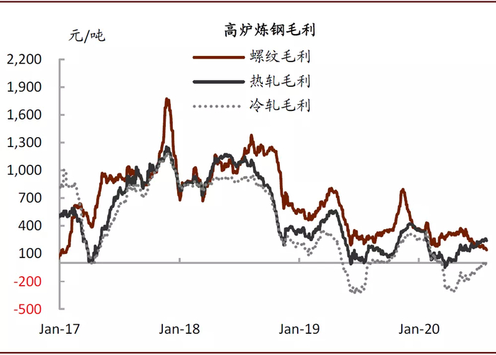 图表: 2020年以来电炉螺纹钢吨钢毛利处于盈亏边缘