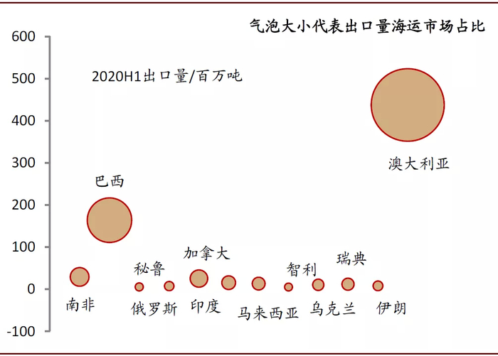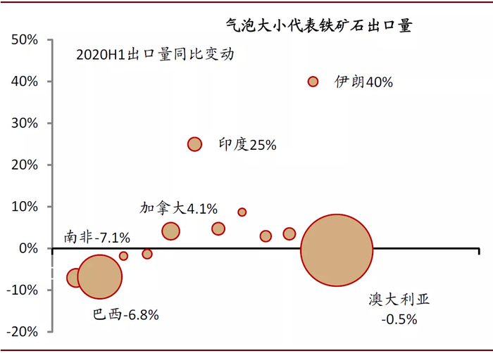 图表: 2020H1澳大利亚和巴西的铁矿出口同比有所下降