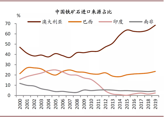 图表: 从2012年自澳大利亚进口的铁矿石占比逐年攀升