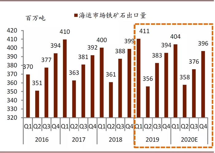 图表: 预计2020下半年澳洲巴西铁矿石出口小幅微升