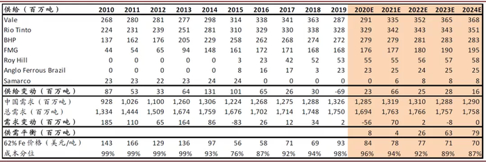 图表: 我们测算的供需平衡表显示,铁矿基本面依然维持偏紧的状态