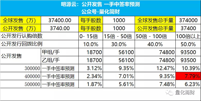 按当前打新人数,明源云初步预计申购人数会在40万左右,超购100倍+,回拨至50%,一手中签率预计7.8%左右,申购100手+稳中一手(模型预测,仅供参考)。