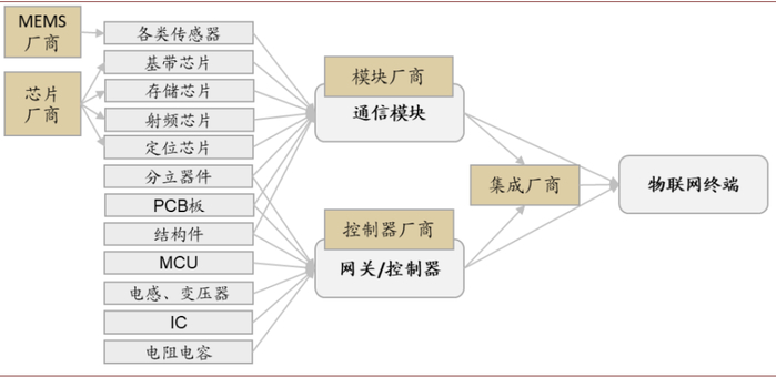 我们认为,探讨物联网连接的价值,首先需要区分定义上游传统元器件厂商和物联网应用设备厂商的价值。上游硬件侧承担数据采集、处理、通信和控制的功能,涉及到摄像头、传感器、芯片、通信模组、控制器等环节,国内公司虽起步较晚,近年来逐步崛起,在细分领域国产化率有所提升;但硬件厂商的特性在于随着连接数放量,产品单价呈持续走低态势。