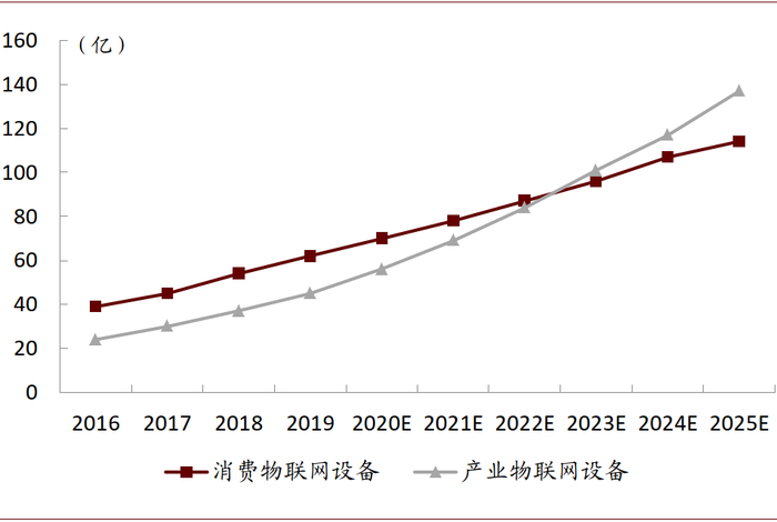 据GSMA预测,2018到2025年,全球产业物联网连接数复合增长约17.4%,消费物联网连接数复合增长约14.2%,产业物联网连接数将在2023年超过消费连接数。物联网在千行百业展露机遇,我们相对看好的领域包括:1)消费和公共事业领域,物联网受宏观不确定性影响相对较小,主要受内生消费升级需求和政策支持拉动,短期看受益明显,以视频监控、智慧能源管理、车联网、全屋智能、健康管理可穿戴设备为代表的应用;2)长期来看,5G低时延高可靠将帮助物联网实现对工业产业的再造,通过远程控制、实时监测、资产追溯等功能解决生产力的供需错配,为传统企业降本开源,推动全社会效益最优。