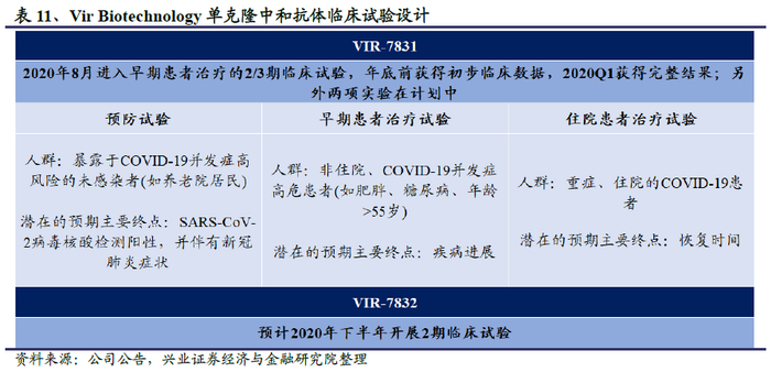 VIR-7831和VIR-7832都是单克隆中和抗体,已被证明具有体外中和SARS-CoV-2病毒的能力。这两种抗体与SARS-CoV-2病毒上和SARS-CoV病毒的共享表位结合,研究表明该表位高度保守,产生突变逃避抗体治疗的可能性更小。VIR-7831和 VIR-7832已经过精心设计,延长了半衰期;其中VIR-7832还可以充当T细胞疫苗。