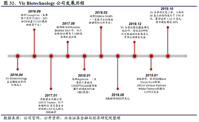 Vir Biotechnology成立于2016年,2019年10月在纳斯达克上市,总部位于美国加州旧金山,拥有全职雇员220余人。VIR是一家临床阶段的免疫学公司,致力于将免疫学见解与尖端技术相结合,以治疗和预防严重的传染病,其使命是创建一个没有传染病的世界。