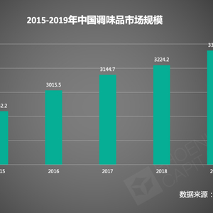 调味品自20世纪90年代后期开始市场化,2016、2017年资本热度攀升,今年其与线上食品品牌、小家电一同跻身大消费领域3大热门赛道。据智研咨询数据,2019年中国调味品市场规模已达3345亿元,8年间复合增长率为7.5%,前瞻产业研究院预测2020年有望突破4000亿。
