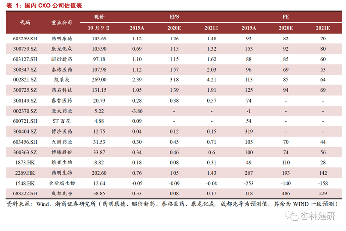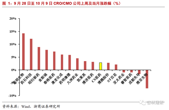 投资建议:我们认为,国内创新药研发,尤其是小分子药物,仍处于高景气度阶段。随着海外创新药在中国进行临床试验的审评审批提速,其在中国上市的窗口期将缩短,利于加快医药外包产业转移的进程,而拥有国际业务经验积累的CRO及CMO龙头公司将是这些海外药企的优先选择。