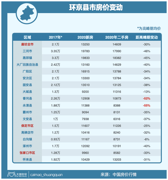 从2017年的下半年开始到现在,环京均价下跌超过30%是很平常的事儿。