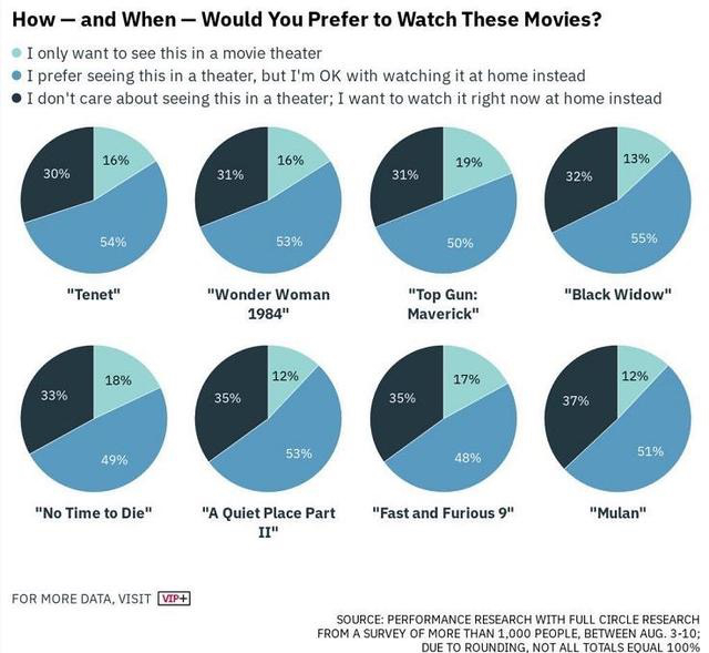 调查显示,如果院线和数字平台同步发行,高达39%的人第一选择也是居家观看。而第一选择必须是影院以及可能是影院的观众总共只有15%。