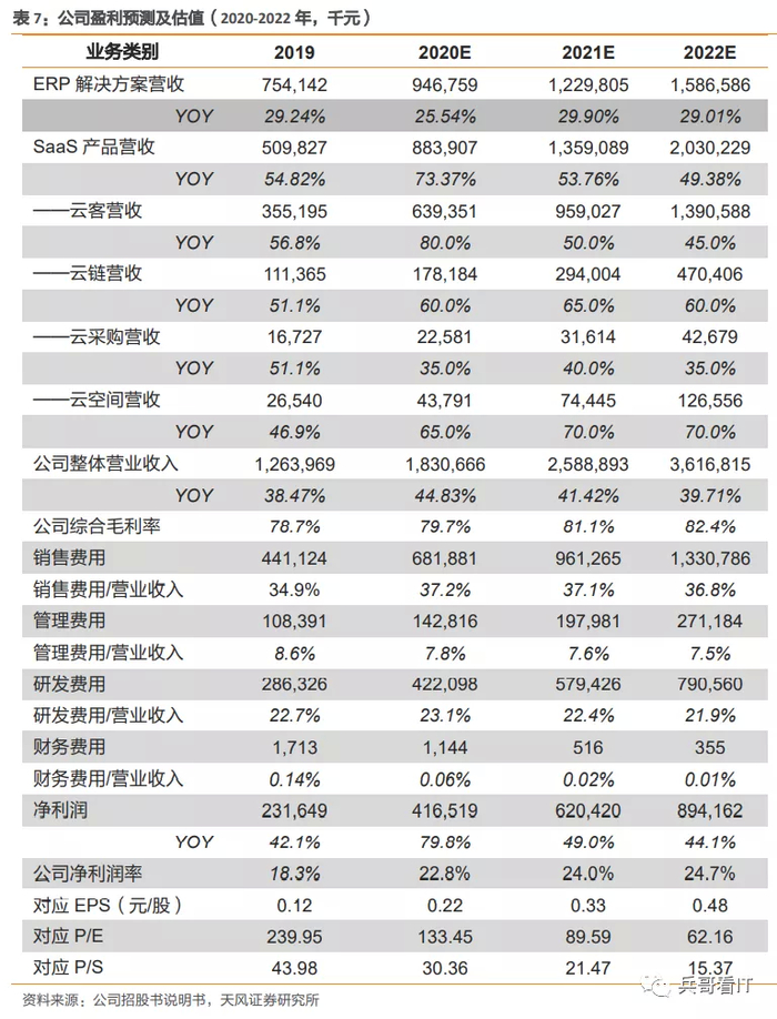 3) 考虑到公司ERP下沉推广需求及SaaS产品模块推广需求均需借助渠道营销网络,因而销售费用仍将保持较高增长。