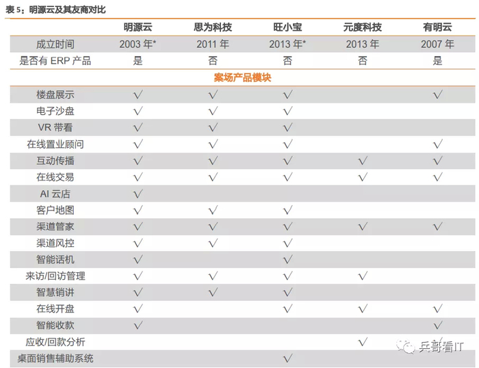 上述几家公司在案场SaaS的部分模块与明源云功能重合。但综合而言,明源云的优势在于: