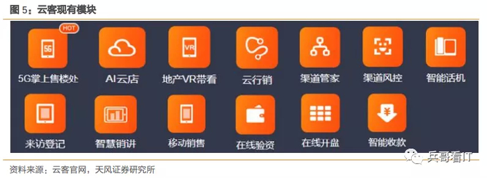 云客:2019年,配备云客的案场数量为8,700家,以全国2.5万家案场进行保守估计,公司市占率达到35%;单案场ARPU值为4.08万元,相对案场的营销费用投入以及云客为客户带来的经济效益(如识别飞单可为案场节省百万量级渠道费用),该ARPU值仍处于较低水平。未来云客的发展驱动力更多在于增值模块不断丰富创新以及渗透率提升带来的单案场ARPU值提升。