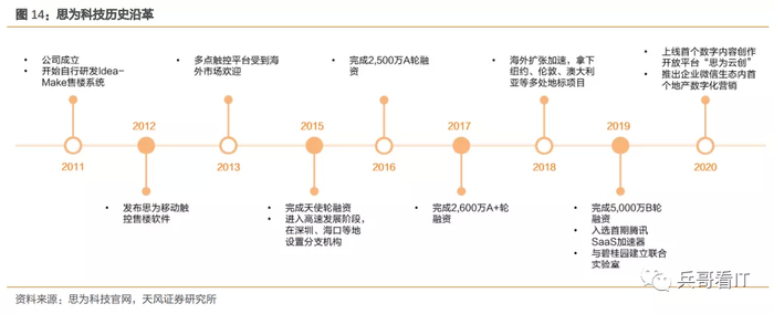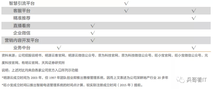思为科技成立于2011年,以售楼软件起家,专注地产营销领域。2019年公司员工超过200人,在全国设有19家办事处,并在美国、英国等多个海外国家有落地合作。产品方面,思为与明源云客模块重叠程度较高。思为优势在于社交营销:不仅与企业微信达成合作、置业顾问可基于企业微信实现为微信客户的直接触达和维护,且拥有较为独特的营销内容开发平台。