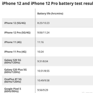 经过测试,iPhone12在5G网络环境下,续航时间为8小时25分钟,而4G网络环境下续航为10小时23分钟。iPhone12Pro在5G网络环境下续航为9小时6分,在4G网络环境下,续航时间为11小时24分钟。