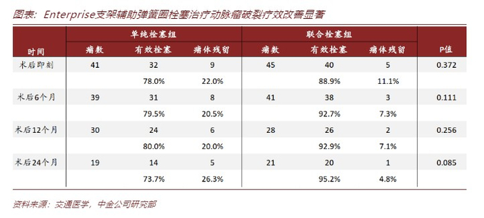 弹簧圈栓塞术核心评价标准:动脉瘤填塞率。弹簧圈辅助支架可帮助提高栓塞致密程度,提高动脉瘤填塞率,并减少纯弹簧圈栓塞可能的脱出风险。目前已上市的辅助支架包括史赛克Neuroform支架、法国巴尔特Leo支架、强生Enterprise等。