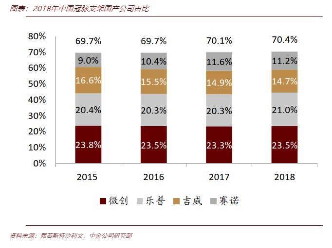 中国企业支架技术成熟,取栓支架布局潜力大。中国冠脉支架市场发展成熟,2018年心脏支架使用量达138.5万套,2010-2018年同比增速保持在10%以上。国内企业冠脉支架研发和生产经验丰富,2004年微创、乐普相继入局后,2006年国产市占率已达到60%,国产企业耗时约2-3年占领市场。我们认为本土企业在颅内支架布局潜力大。