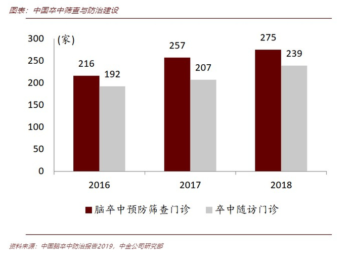 黄金救治要求属地化治疗,基础市场潜力大。相比于其他许多病种患者可以前往城市及三甲医院获得更好治疗,脑卒中患者发病后尽早得到有效救治才是获救关键,因此其生活半径内的医疗机构才是救治主体。我们认为脑卒中治疗急迫性决定了基层需求的属地性。