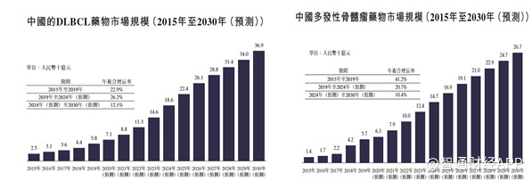 之所以德琪医药会把ATG-010作为自己头号核心产品,因为根据弗若斯特沙利文数据显示,中国的多发性骨髓瘤药物2019年市场为57亿元人民币,至2024年将达到147亿元,年复合增长率为20.7%。另外,中国的弥漫性大B细胞淋巴瘤药物市场规模也十分巨大,预计将从2019年的58亿元增长至2024年的186亿元,年复合增长率26.2%。