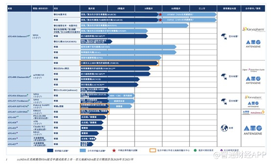 ATG-010 (selinexor)是同类首款且同类唯一的一种选择性核输出蛋白抑制剂(SINE),该产品可以促使肿瘤抑制蛋白在细胞核内积累,选择性诱导癌细胞凋亡。美国FDA于2019年7月批准selinexor与低剂量地塞米松联合治疗复发难治性多发性骨髓瘤适应症(RRMM),并于2020年6月批准selinexor单药治疗复发难治性弥漫性大B细胞淋巴瘤(R/R DLBCL)。