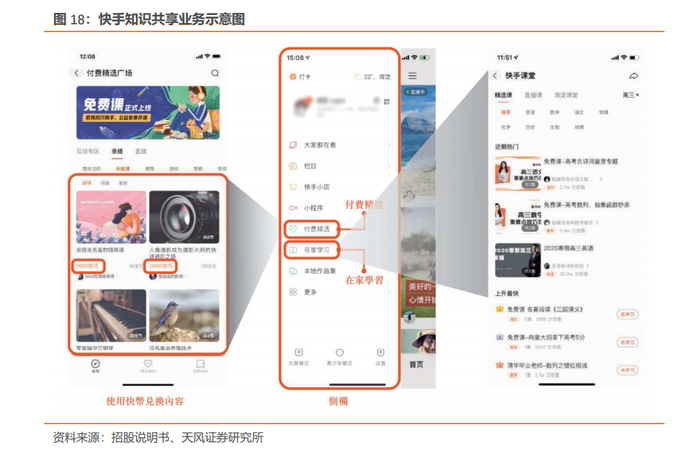 2018年夏季,快手在平台开始提供知识共享内容,主要包括由普通用户分享的技能及其他教育内容。知识共享内容可以提前录制或以直播形式开展。