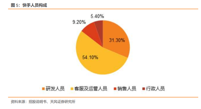费用率方面,快手运营费用率整体呈现上涨趋势,主要原因在于推广快手极速版与其他应用程序的营销开支以及品牌营销活动使得销售费用率的大幅提升。