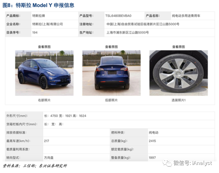 11月5日工信部发布的《道路机动车辆生产企业及产品公告》(第338批)显示,国产Model Y完成申报。Model 3已经为特斯拉在中国打下了良好的基础,而空间更大、实用性更强的Model Y作为特斯拉的入门级SUV被马斯克给予了更多期待。基于今年上海工厂产能的爬坡进度,预计明年Model Y目标年产能或不低于目前Model 3的水平,二者合计年产能至少达到50万辆。