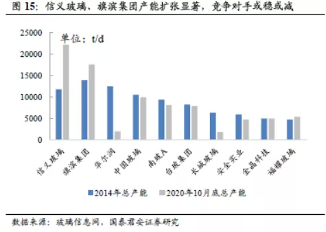 我们观察到虽然行业总产能2015年后未见扩张,但信义玻璃、旗滨集团双龙头的“头部”效应愈发显著,体现为产能的持续扩张以及与行业盈利能力的拉开。