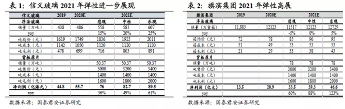 但按照我们上述分析,2021年超白浮法实现转产光伏组件背板后,建筑用浮法原片出现供给缺口,进而持续推升浮法量价弹性,而转产的光伏组件背板将显著增厚信义、旗滨等龙头公司业绩: