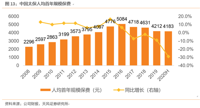 太保在2018-2020年扎实推进的代理人转型过程中,大概率已经清理掉低产能代理人,我们预计代理人规模将于2021年企稳回升,伴随着代理人结构优化及存量代理人产能逐步提升,新单保费增速将得到改善,价值率将会保持平稳。