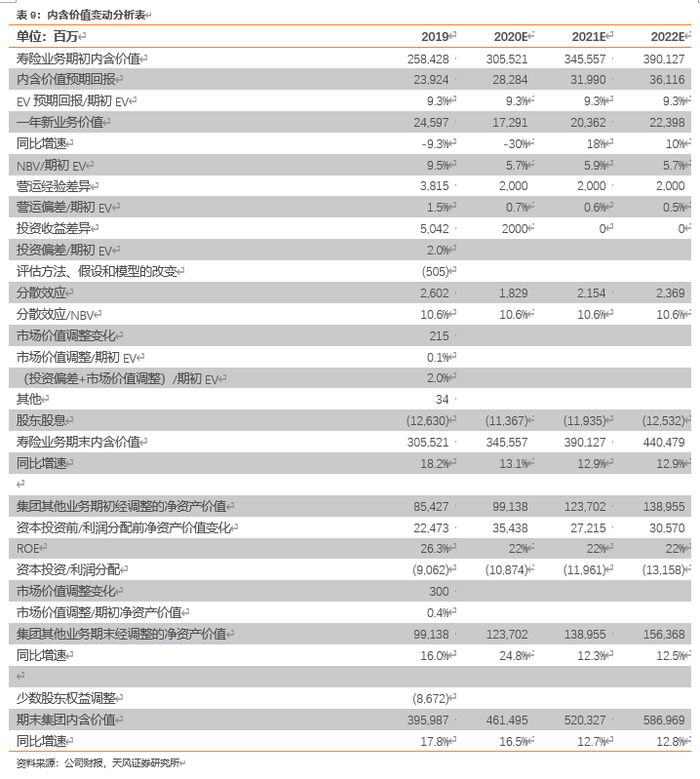 我们预计2020、2021、2022年太保寿险NBV增速分别为-30%、18%、10%,预计太保集团2019、2020、2021年内含价值分别为4615、5203、5870亿,同比增速分别为16.5%、12.7%、12.8%。