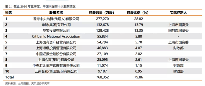分散化股权结构,上海市国资委管理模式较为先进。公司股权结构较为分散,除香港结算所和花旗银行外,仅有三家机构持股占比超过 5%,分别为申能集团(13.8%)、华宝投资 (13.4%)、上海国有资产经营有限公司(5.7%),公司最大的股东为上海市国资委,直接和间接的实际持股比例为 22.1%。上海市国资委的管理模式较为先进,且整体分散化的股权结构有利于发挥制衡作用,为集团管理层带来更大的主观能动性空间,保险业务的执行战略受到股东的影响相对较小。且在聚焦价值的战略导向下,集团考核董事会、董事会考核寿险总公司、寿险总公司再拆解到各个分支机构,自上而下均以价值增长为主要目标。