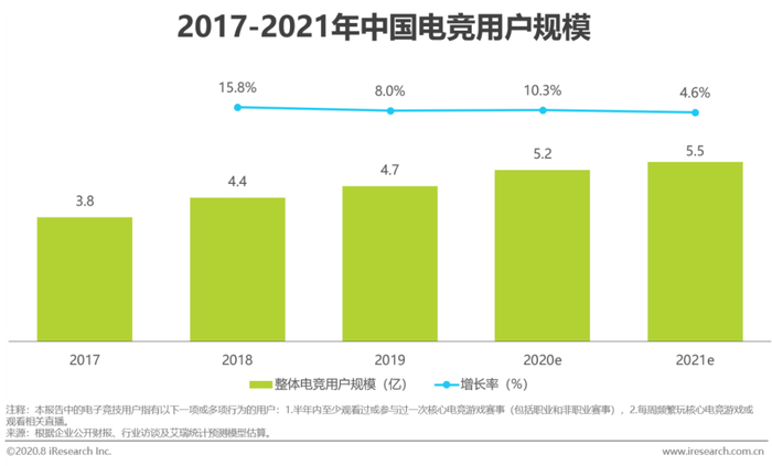 战术竞技等新型电竞游戏不断涌现、各类电竞赛事不断完善、游戏直播平台持续拓展电竞业务、短视频平台进军游戏直播,均是推动电竞用户进一步增长的动力。预计未来用户增速将逐步放缓,电竞行业将重点关注存量用户向核心用户转化。同时,国内整体电竞用户付费率相对较低,仍需时间培养用户付费习惯以充分开发电竞商业化价值。