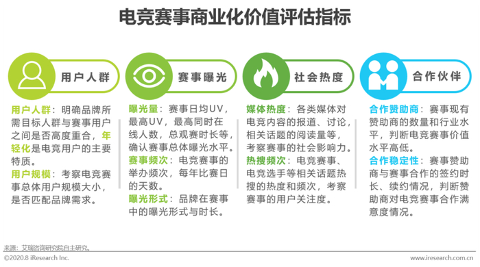 电竞是年轻人的聚集地,当企业有品牌年轻化、获取年轻用户等需求时,如何选择合适的电竞赛事是首先要面临的问题。综合考察一个电竞赛事商业化价值高低,可以从电竞赛事的用户人群、赛事曝光、社会热度及合作伙伴这四个方面出发,判断赛事整体商业化价值水平。