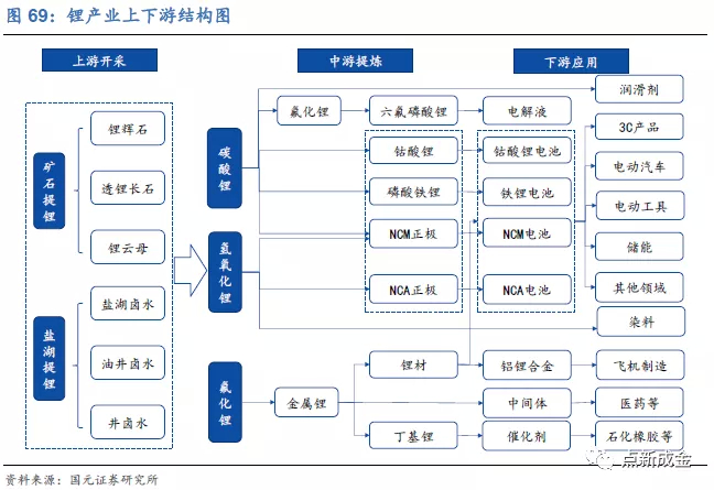 锂碳酸锂和氢氧化锂是锂产业链中游的主要产品。锂产业链终端需求产品的分化带来了上游锂行业的分化。目前NCM523、NCM333等中低镍三元材料及铁锂材料主要采用电池级碳酸锂制备,对于6系及以上高镍三元则采用氢氧化锂。中国有色金属工业协会锂业分会数据显示,卤水提锂生产电池级碳酸锂的成本在3-5万元/吨,而矿石提锂生产碳酸锂的成本在4-5万元/吨。