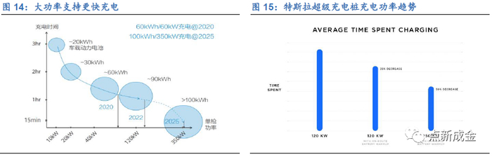 超高补能效率未来2年内有望快速向下渗透。面向2025年电动汽车发展,随着乘用车将迎来TCO(总体拥有成本)平价时代,消费者对电动汽车的接受度提高,续航里程和充电便捷度为关键购买要素。以乘用车为例,从2020年到2025年,充电电压将500V升级到800V,单枪充电功率从60kW支持到350kW,很多电动车的电池容量也会从60度电升级到100度电,而充满电的时间将会从1个小时左右缩短到10-15分钟,接近燃油车的加油体验。在特斯拉推出最高功率可达250kW的V3超充桩、欧洲超充站运营商Ionity推出最高功率350kW的超充桩之后,具备750V以上电压平台的电动汽车已可实现15分钟补充续驶里程250-400km。