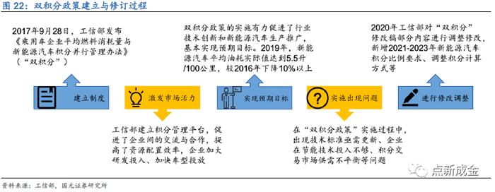 中国新版双积分政策趋严,托底新能源车长期增长。2020年6月29日,工信部正式发布《关于修改〈乘用车企业平均燃料消耗量与新能源汽车积分并行管理办法〉的决定》,自2021年1月1日起施行。正式稿对新能源积分计算更为严格,同时加入技术调整系数鼓励电动技术持续进步。1)对于主要合资车企来说新能源积分缺口更大,倒逼其加速推出新车型,同时预计2021年欧洲新能源车产品加速在国内投放,以满足新能源积分要求。2)由于2020年疫情影响,双积分政策为纾困车企而延缓结算期,2021年新能源积分抵偿2020年负积分,且21年开始新能源积分供给过剩局面改变,积分价值将提高。