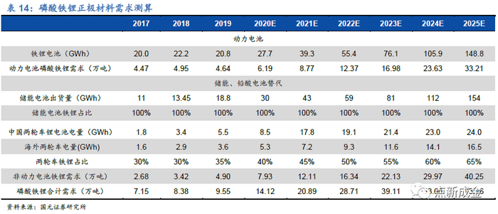 预计2025年磷酸铁锂正极材料需求73.46万吨,其中动力电池磷酸铁锂正极材料需求约33.21万吨,非动力电池需求约40.25万吨。2020-2025年CAGR为50.4%。