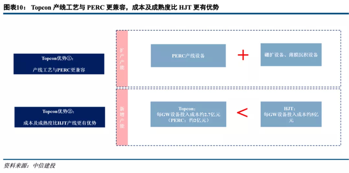 ①当前PERC+/Topcon/HJT三线并进,不同电池片厂商由于技术积累不同、原有产能、厂房、设备投入不同、自身产业链布局不同、客户分布不同、企业经营策略不同等多方面因素,选择了不同的技术路线;